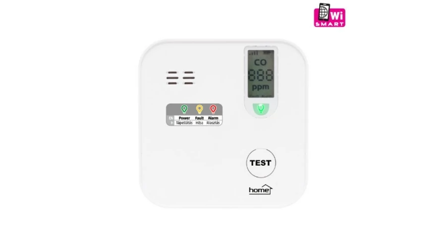 Home CO10SMART szén-monoxid vészjelző, Tuya kompatibilis, Wi-Fi kapcsolat , LCD kijelző, elemes, 5 év elem élettartam, 10 év érzékelő élettartam
